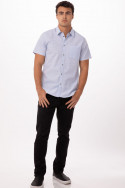 Camisa de manga corta con Tejido 65/35 poliéster/algodón, manga corta, presilla para delantal, pinzas en la espalda, costuras con dobladillo, bolsillos en pectoral izquierdo y manga izquierda.