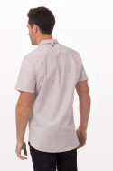 Camisa de manga corta con Tejido 65/35 poliéster/algodón, manga corta, presilla para delantal, pinzas en la espalda, costuras con dobladillo, bolsillos en pectoral izquierdo y manga izquierda.