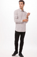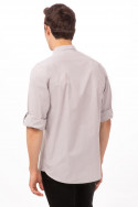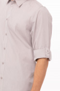Camisa en tejido 65/35 poliéster/algodón, canes con pinzas en espalda, manga larga enrollable, puño con dos botones, cierre frontal