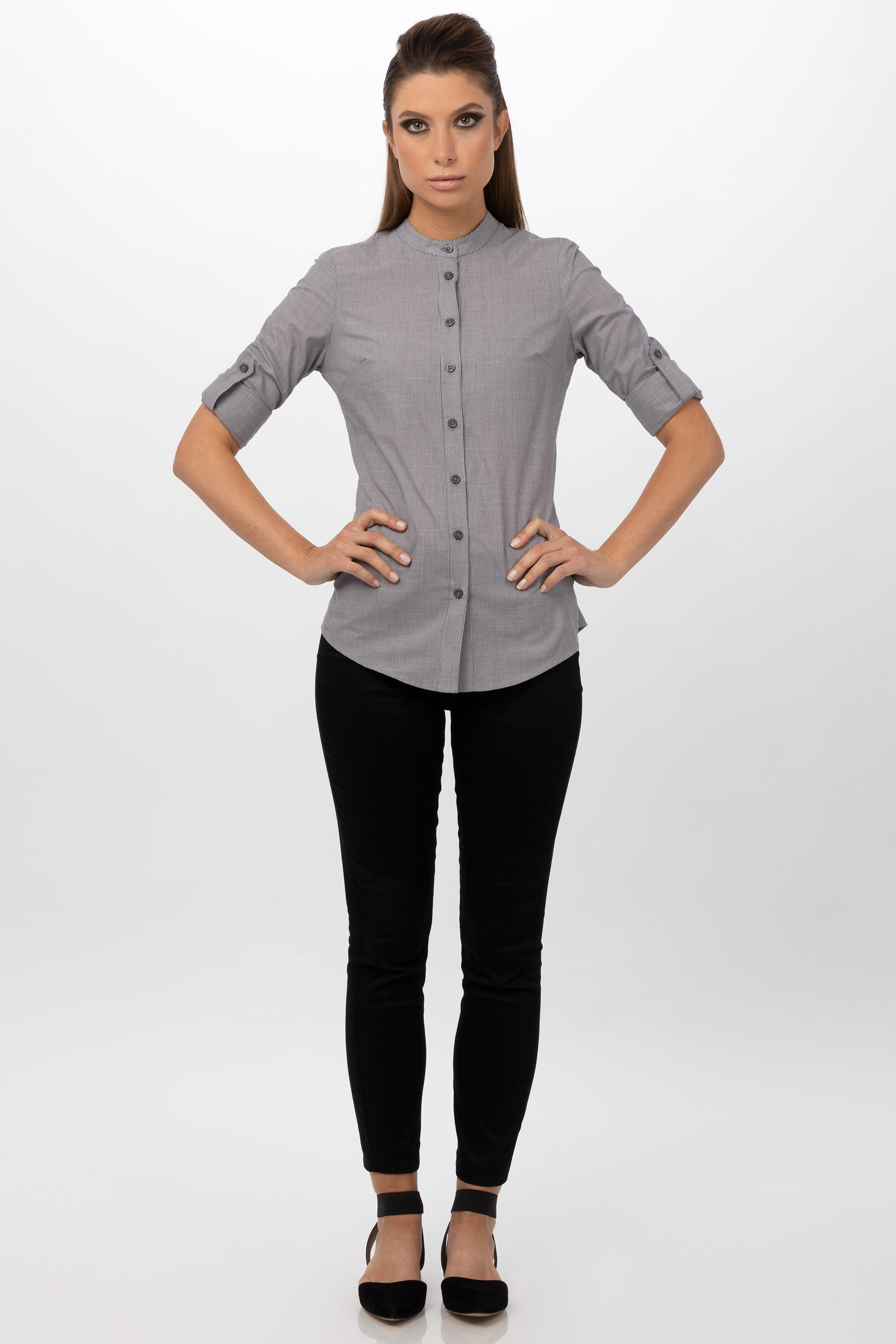 La camisa Verismo para mujer ha sido cuidadosamente seleccionada con detalles vanguardistas diseñados para elevar el código de vestimenta de camareros, barmans y embajadores de marca. La artesanía artística confiere a la camisa Verismo para mujer un aspecto equilibrado y limpio que sigue siendo funcional, favorecedor y femenino.