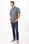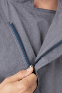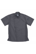 Tejido 135 gramos 65/35 poliéster/algodón sarga ligera 'lite', paneles laterales en tejido Cool Vent™, aberturas en los laterales, manga corta, cierre con cremallera oculta, presilla para sujetar el delantal, bolsillo en manga derecha para dispositivo móvil o libreta.