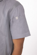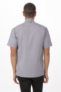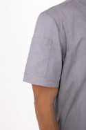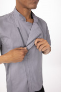 Tejido 135 gramos 65/35 poliéster/algodón sarga ligera 'lite', paneles laterales en tejido Cool Vent™, aberturas en los laterales, manga corta, cierre con cremallera oculta, presilla para sujetar el delantal, bolsillo en manga derecha para dispositivo móvil o libreta.