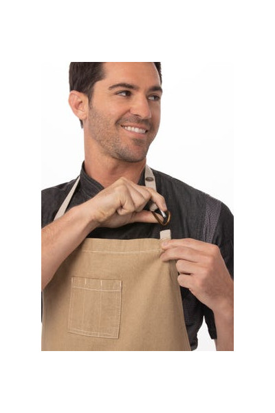 AUSTIN CHEFS BIB, delantal peto color natural y cierre con mosquetón