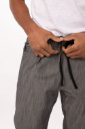Pantaln en tejido 76/24 algodón/poliéster Milrayas con cintura elástica cómoda y ajustable, con cremallera, bolsillos con ribetes, bolsillo para el cambio y bolsillo trasero con cierre de botón, puño elástico en los bajos del pantalón.